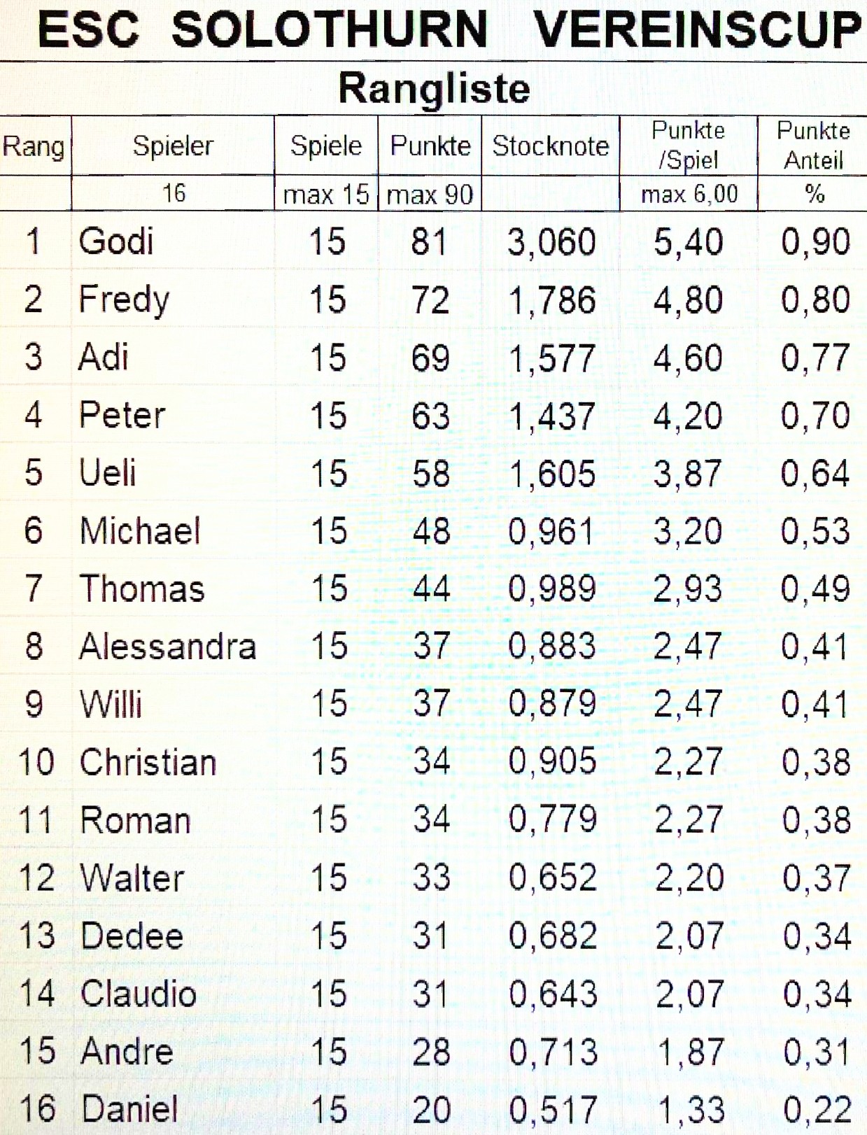 Die Wertungen wurden unserem Sportchef gemeldet, welcher die Tabelle nachgeführt hat.